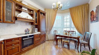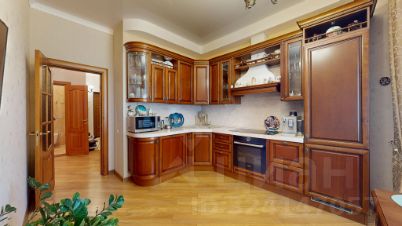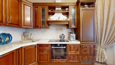 В квартире остается кухонный гарнитур из массива дерева производства Италии со встроенной бытовой техникой премиальных линеек BOSCH, SIEMENS, LIEBHER и дизайнерские портьеры из тканей известных Итальянских брендов.