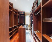 Универсальность задумки архитектора, объёмы и форма помещений позволяют, не нанося ущерба удобству, ощущению площади и визуальной эстетике, восполнить недостающее бытовое пространство встроенными шкафами в тон стен или дверей в мастер-спальне, холле, кухне и 3-ей спальне.