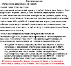 После фундаментального авторского ремонта (длительностью год + гарантийный период усадки) - в стиле спокойного американского буазери, допускающего различные вариации меблировки от барокко до современной лаконичной монохромной классики. Сейчас на этапе мелких финишных доделок (1-2 недели при выезде за счёт продавца - после согласования пары индивидуальных нюансов с покупателем).