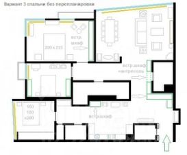 Квартира спроектирована для комфортного проживания пары, пары + 1 или - при варианте три спальни - пары + 2. Четвёртая спальня, кабинет, спортзал и прочие доп-помещения при использовании трёх спален проектом не предусмотрены.