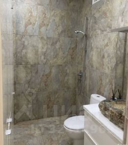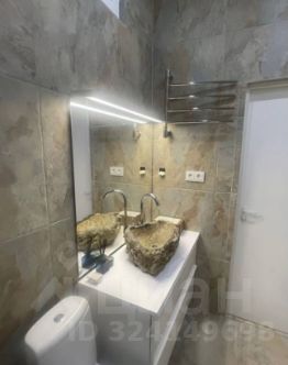 Особенностью квартиры является ванная комната с отделкой камнем, раковиной из ОНИКСА и тропическим душем. Теплый пол.