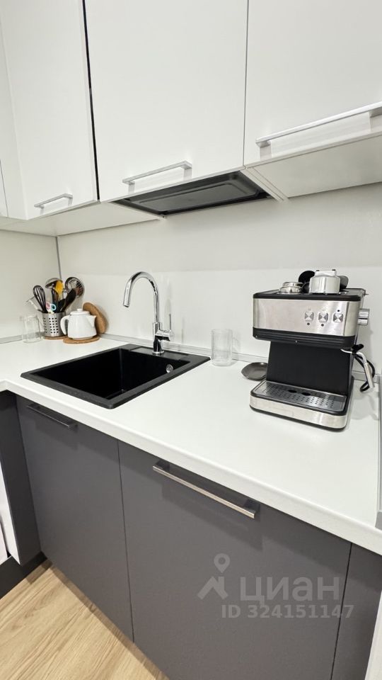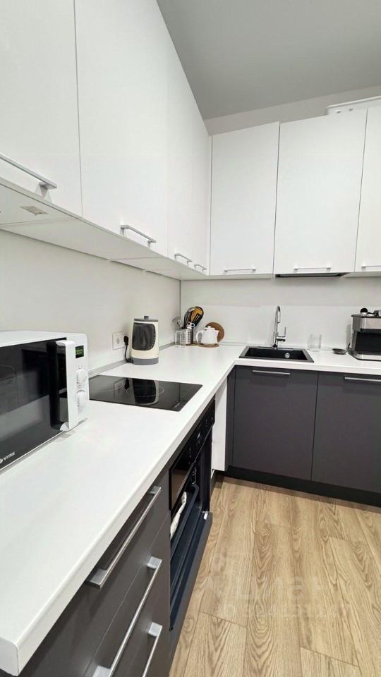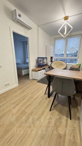 Квартира находится на 13 этаже 14-этажного дома, построенного в 2024 году. Общая площадь составляет 34,5 кв. м, а просторная кухня — 17 кв. м.