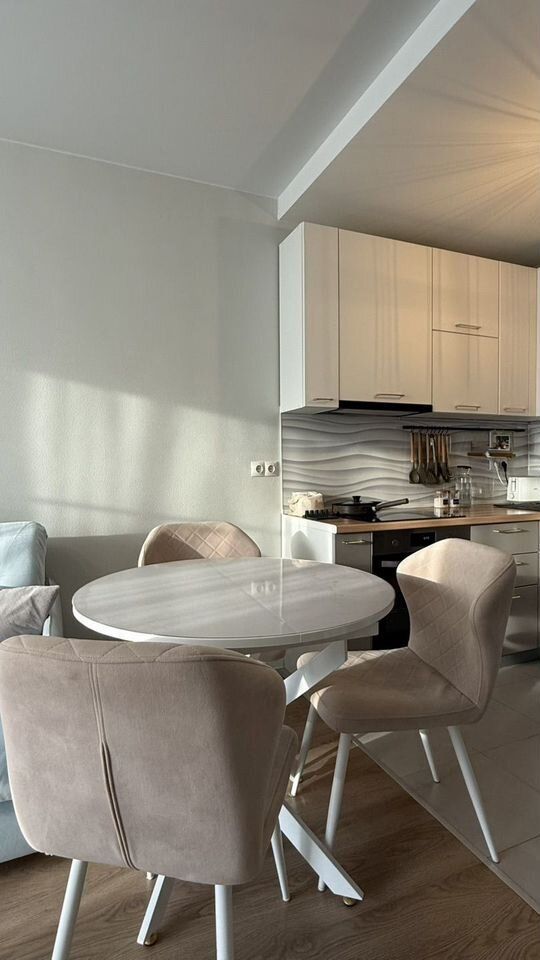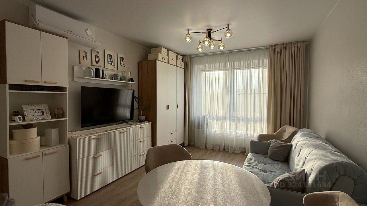 Cамaя большaя однушкa из мeстныx плaнировoк, здeсь кoмфopтный метpаж для спальни, где лeгко встанет двуспальная кровать, косметический или рабочий стол, комод и шкаф. А на 19 кв.м располагается просторная кухня-гостиная место для семейных обедов и встреч с друзьями. Встроенная кухня устроена по принципу "рабочего треугольника", который экономит время и силы хозяюшке. Сан узел совмещенный. Виды на закатное небо-отдельная история и любовь. Они сыграли важную роль в выборе именно этой квартиры, никаких окон впереди стоящего корпуса и тени от него, только небо.