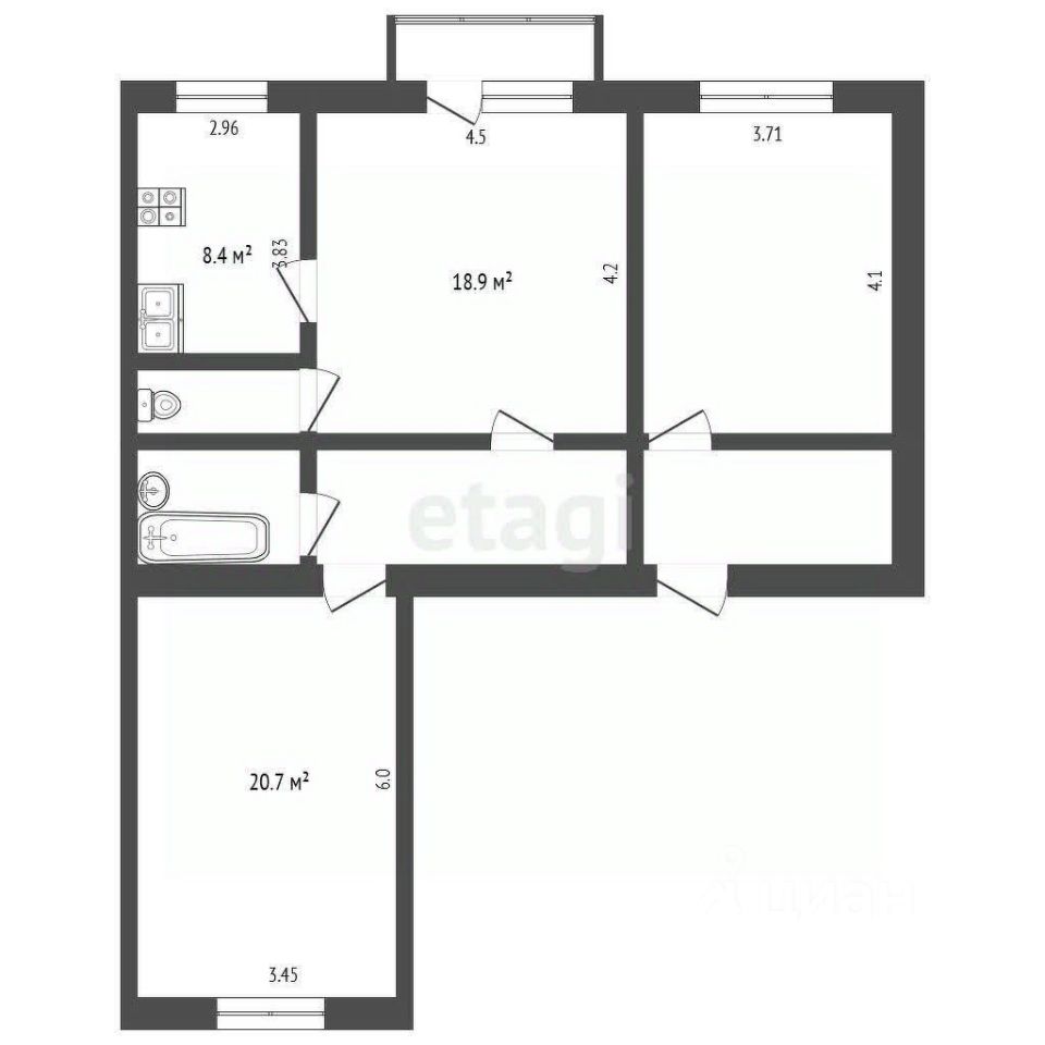 Просторная кухня 8,4 м² служит удобной зоной для приготовления пищи и семейных обедов. Вся мебель остается новым владельцам, что упрощает переезд.