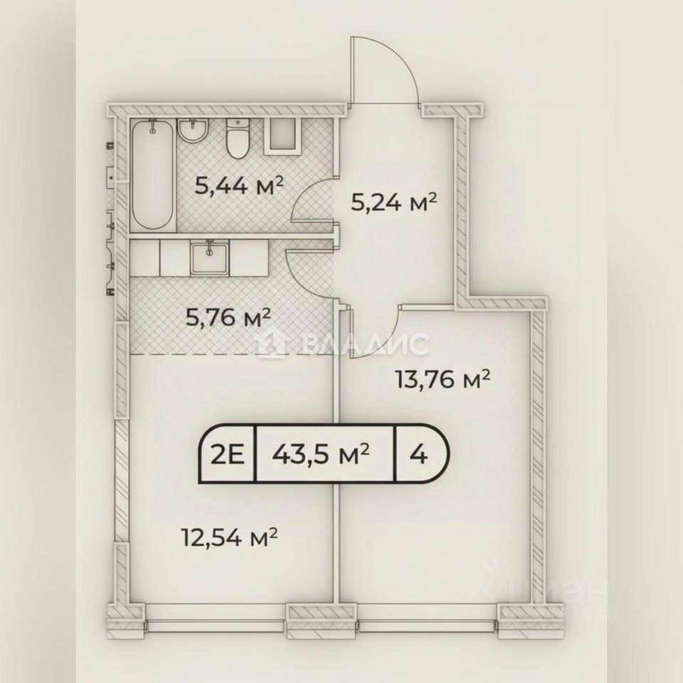Планировка: однокомнатная квартира.