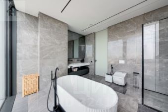 Санузел выполнен в современном стиле с качественной сантехникой.