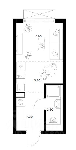 Студия площадью 20,1 кв.м в ЖК 2-й Иртышский, корпус 1.3 от надежного застройщика ПИК.