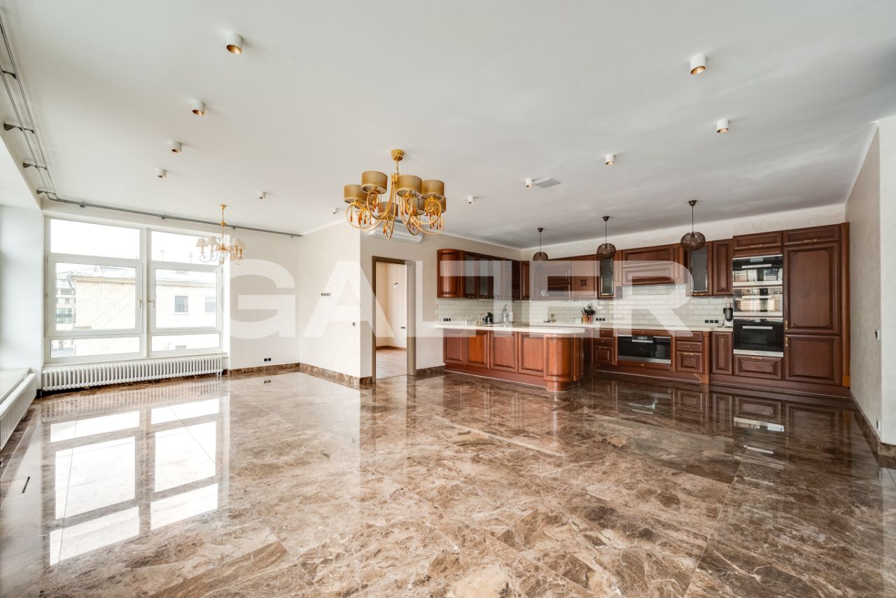 Просторная квартира 400 м² с разделением на общественные и приватные зоны: