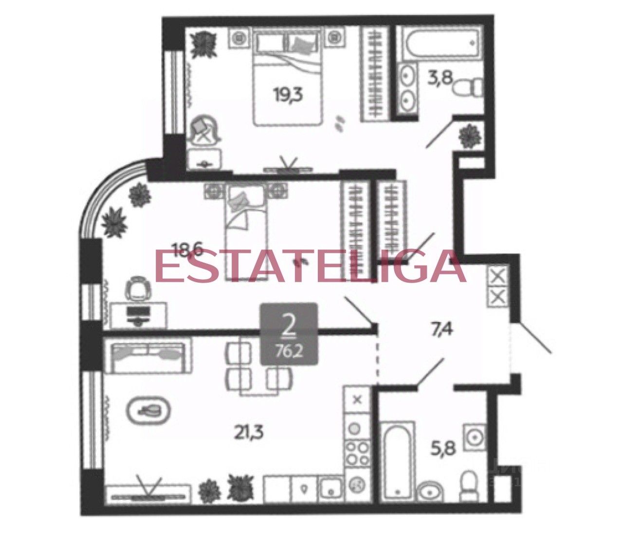 Id 58414. Продаётся Шикарная квартира в ЖК "Shagal" с панорамными окнами!