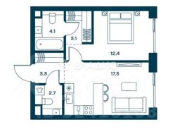 Квартира с отличной и функциональной планировкой - 42,9 кв.м, с панорамными окнами, мастер - спальней, гардеробной. Кухня - гостиная - 17,3 кв.м