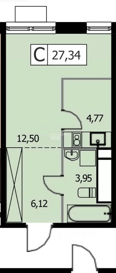 Общая площадь: 27,5 кв. м