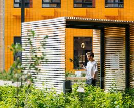 Проект состоит из корпусов с подземными паркингами, школа и детский сад. В зелёных дворах-парках будут места для отдыха, современные детские и спортивные площадки. На первых этажах откроются магазины, кафе и другие сервисы — за кофе и свежим хлебом к завтраку можно будет просто спуститься на лифте.