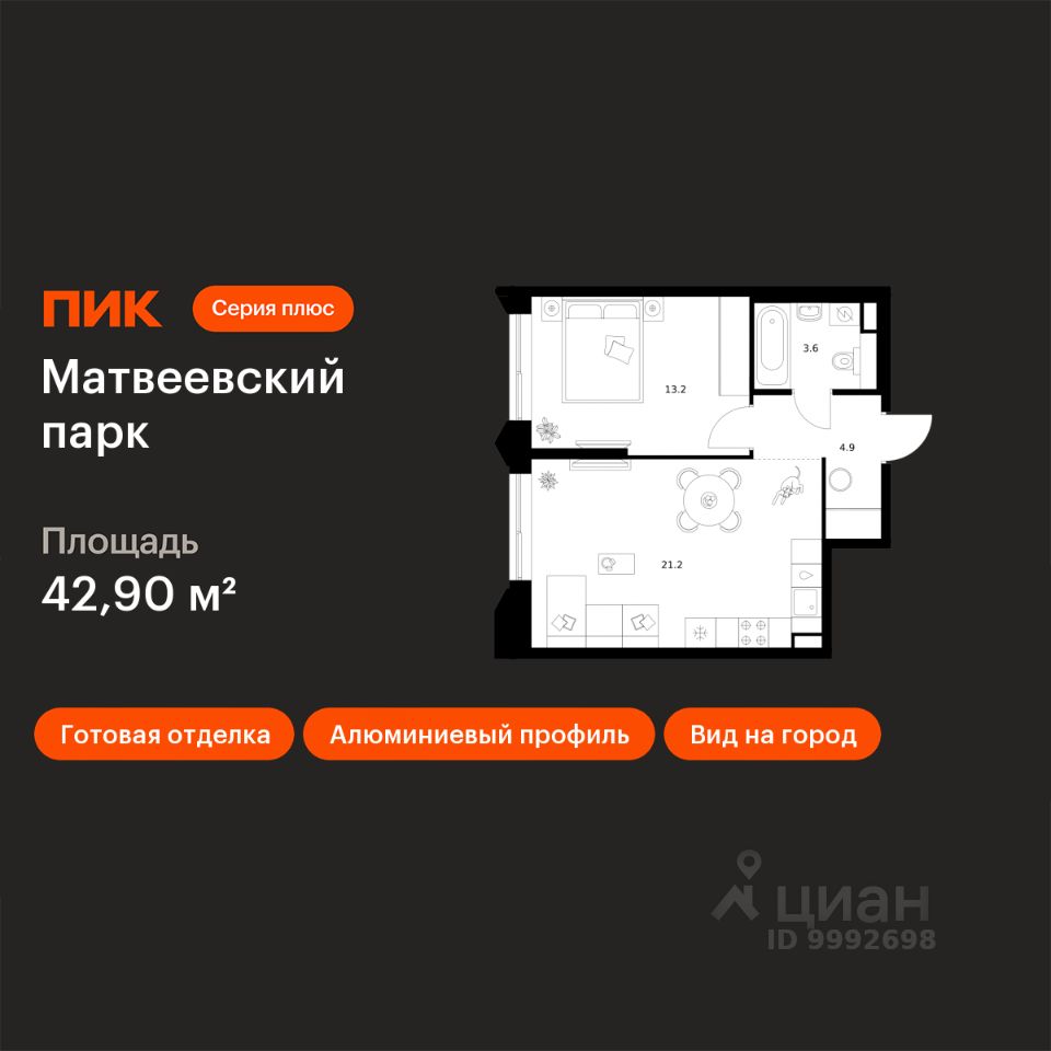 Продаётся 1-комн. квартира площадью 42,9 кв.м на 17 этаже 26 этажного дома (Корпус 4.1, Секция 1) проекта ПИК Матвеевский парк. Светлый просторный подъезд на уровне земли, функциональная планировка, большие окна, c отделкой.
