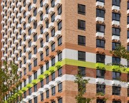 На первых этажах разместятся магазины и различные сервисы услуг. В зелёных дворах без автомобилей будут обустроены детские площадки и места для отдыха.