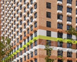 На первых этажах разместятся магазины и различные сервисы услуг. В зелёных дворах без автомобилей будут обустроены детские площадки и места для отдыха.