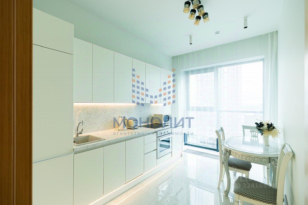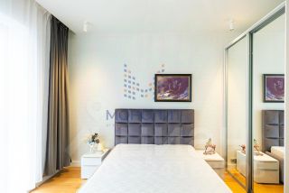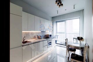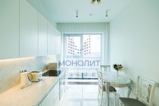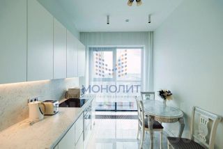 Просторная кухня с диваном-кроватью, изолированная спальня с ортопедическим матрасом с панорамным остеклением. Дополнительный комфорт обеспечивают вместительная гардеробная, индивидуальная мебель и 3-метровые потолки.