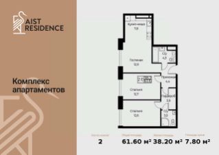 Продаются 3-к апартаменты площадью 61.60 кв.м. на 21-м этаже