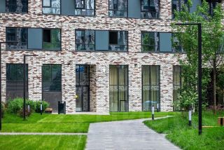 Предусмотрен велопарк и площадка для выгула собак за периметром двора. Безопасность обеспечивается за счет закрытой охроняемой территориии.