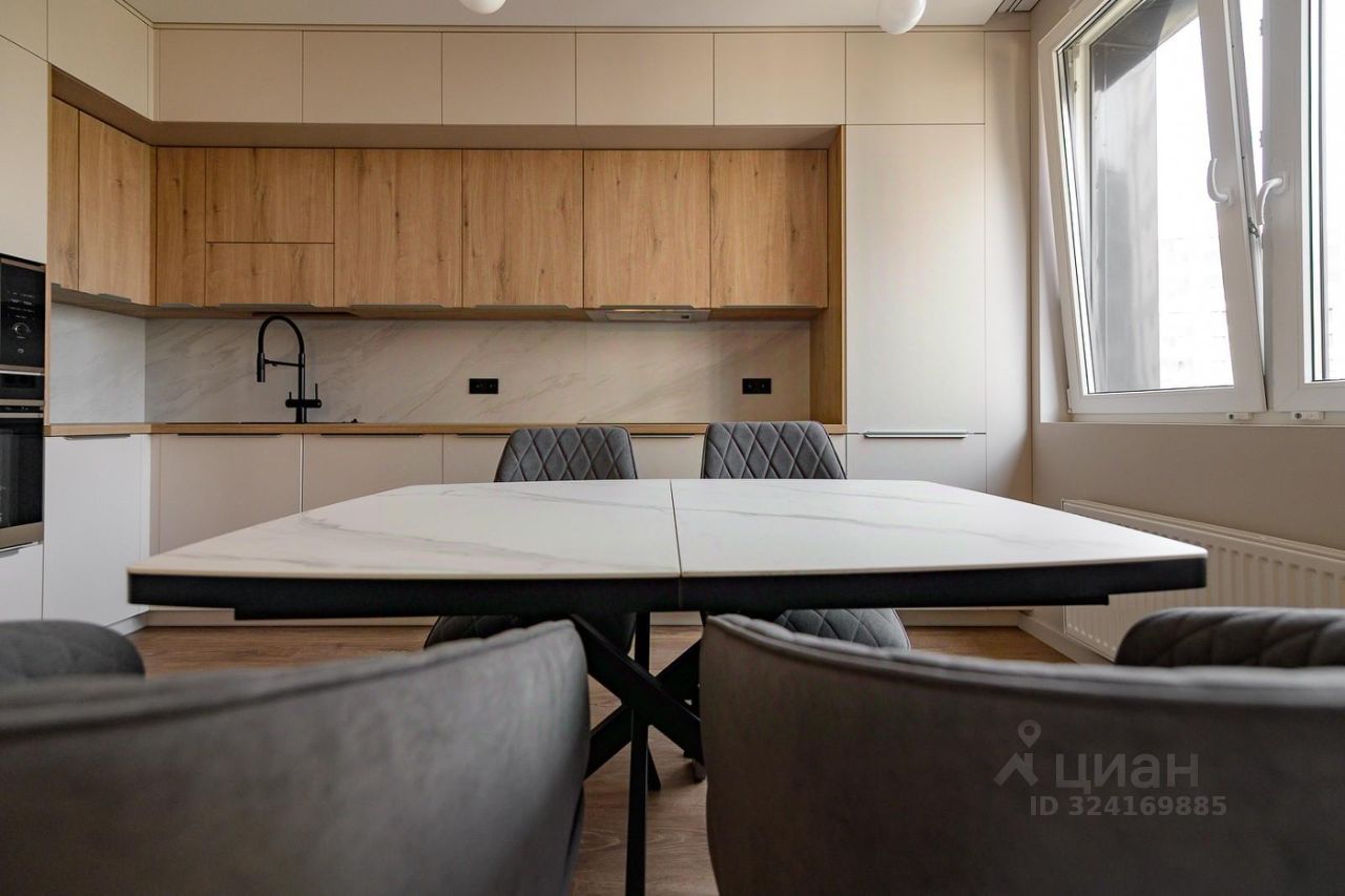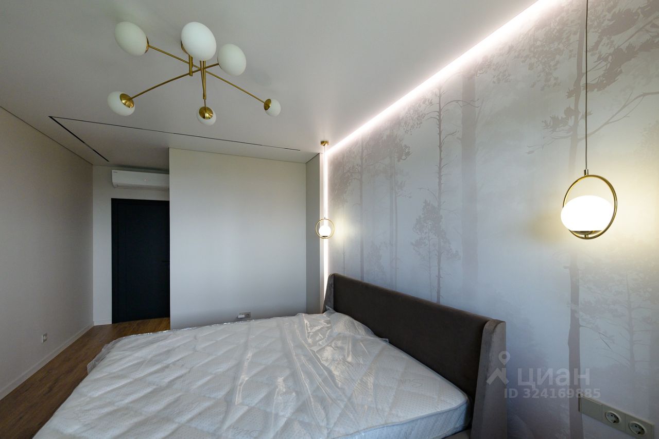 3 комнаты, площадь 110 м², 6 этаж. Планировка включает просторную кухню-гостиную, спальню, санузел и прихожую. Интерьеры выполнены в современном стиле, большие окна наполняют пространство светом и создают атмосферу уюта и простора.