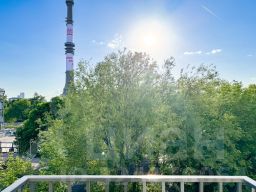 3 метровые потолки. Окна на 2 стороны- часть окон с панорамным остеклением в пол и выходом на балкон, с видом на Останкинскую телебашню, а часть окон выходят на Останкинский парк.