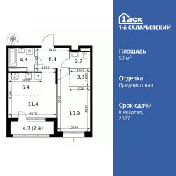 Продаётся 2-к квартира номер 112 общей площадью 50.5 кв.м. на 13-м этаже 21 этажного здания. Отделка Whitebox. Цена с учётом скидки.
