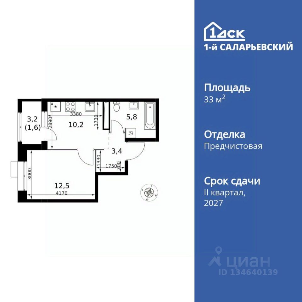 Продаётся 1-к квартира номер 154 общей площадью 33.5 кв.м. на 17-м этаже 21 этажного здания. Отделка Whitebox. Цена с учётом скидки.
