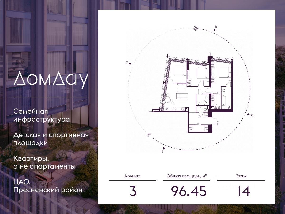 Прoдаётся 3-кoмнaтнaя квартира на 14 этаже площадью 96.45 м² в "Дом Дау" - небоскребе нового поколения в Москва-Сити.