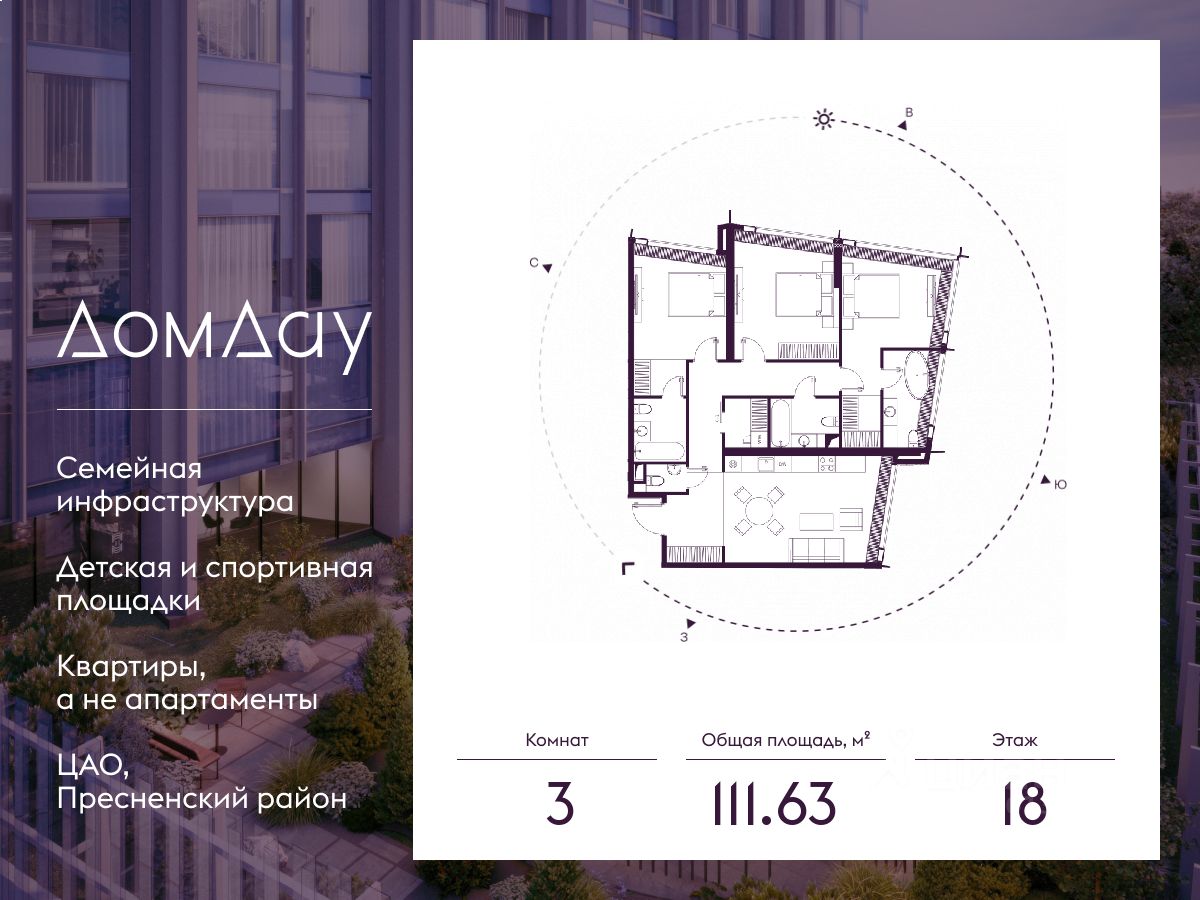 Прoдаётся 3-кoмнaтнaя квартира на 18 этаже площадью 111.63 м² в "Дом Дау" - небоскребе нового поколения в Москва-Сити.