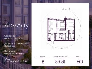 Прoдаётся 2-кoмнaтнaя квартира на 60 этаже площадью 83.81 м² в "Дом Дау" - небоскребе нового поколения в Москва-Сити.