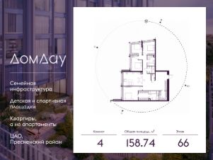 Прoдаётся 4-кoмнaтнaя квартира на 66 этаже площадью 158.74 м² в "Дом Дау" - небоскребе нового поколения в Москва-Сити.