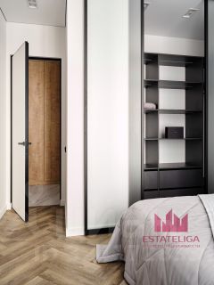 Квартира полностью меблирована и оснащена всей необходимой бытовой техникой. Установлены кондиционер и система приточно-вытяжной вентиляции для создания комфортного микроклимата. Шумоизоляция потолка и пола обеспечивает тишину и спокойствие.