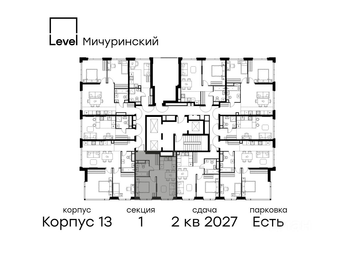 В жилом квартале, расположенном на границе с природным заказником "Долина реки Очаковки", продаётся 2-комнатная квартира площадью 39.80 кв.м без отделки. Квартира расположена на 16 этаже 31-этажного корпуса 13 в жилом комплексе бизнес-класса Level Мичуринский (компания Level Group/Левел групп).