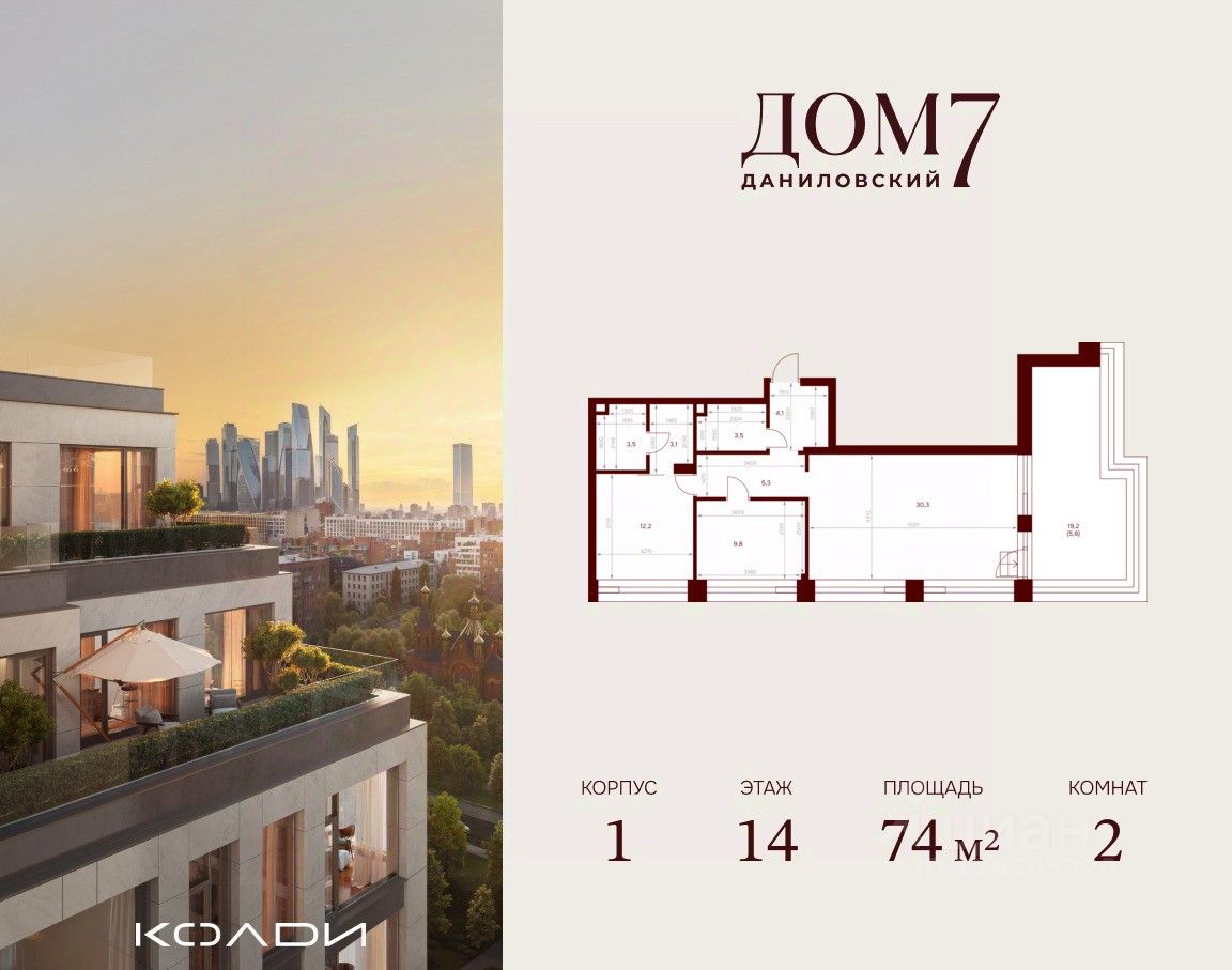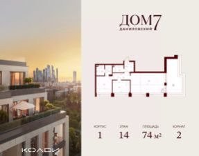 Продается 2-к квартира общей площадью 74.00 кв.м на 14 этаже в жилом квартале премиум-класса "Дом 7 Даниловский".