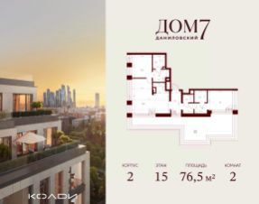 Продается 2-к квартира общей площадью 76.50 кв.м на 15 этаже в жилом квартале премиум-класса "Дом 7 Даниловский".