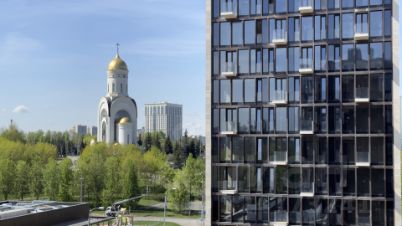 Главное о локации. Здесь дом выходит в парк. Утром жители бегут по каштановым аллеям Парка Победы, слушают воду у каскада фонтанов "Годы войны" и сворачивают к открытому музею под небом с танками, самолётами и поездами. Днём это простор для семейных прогулок и веломаршрутов, место, где ребёнок узнаёт историю не по картинке, а на настоящих экспонатах. Вечером включается мягкая подсветка воды и монумента, на площади горят огни Триумфальной арки, набережные зовут к медленным маршрутам. Поблизости сохраняется редкая в центре тишина: вокруг зелёные поляны Поклонной горы и широкий горизонт видов. Здесь легко прожить неделю пешком — парк, музеи, кафе и повседневные сервисы складываются в один сценарий дня.