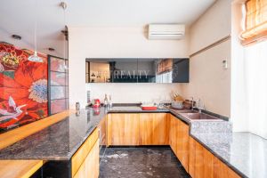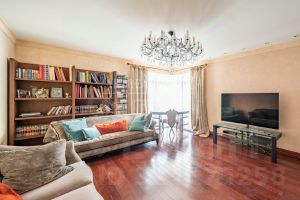 В квартире установлена система приточно вытяжной вентиляции, кондиционеры, теплый пол, система контроля протечки воды, много мест для хранения.