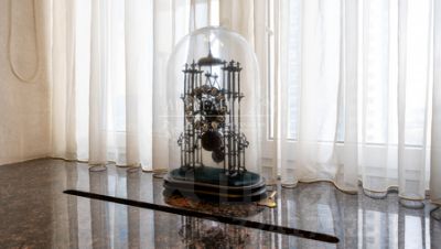 В гостиной вручную выложена итальянская мозайка мастерами из Италии, люстра из муранского стекла, предметы декора из Ralph Lauren Home.