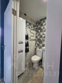 Совмещенный санузел с аккуратным ремонтом, установлена стиральная машина.