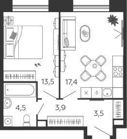 Продается квартира 51, по адресу г. Москва, внутригородское муниципальное образование Даниловское, ул. Автозаводская, вл. 23/73, корпус Жилой квартал Shagal, 3 очередь, 1 этап, корпус 1 в Shagal на 8 этаже, с площадью 42.8 м2.