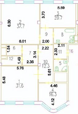 3-х комнатная квартира общей площадью 150.8 кв.м., включает в себя: