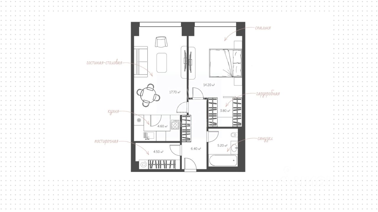 Квартира с одной спальней общей площадью 56 м² в комплексе премиум-класса Prime Park на Ленинградском проспекте. Квартира с предчистовой отделкой white box расположена на 14 этаже в корпусе R1, секция 1. Планировка: гостиная-столовая-кухня, спальня со своей гардеробной, ванная комната, гардеробная с постирочной зоной, холл. Благодаря панорамным окнам пространство наполнено естественным светом.