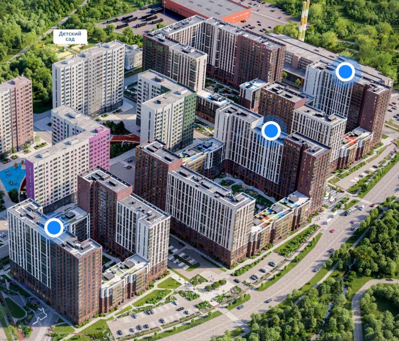 Рядом с домом находится Троицкий лесопарк с каскадами прудов. Низкая плотность застройки — вокруг природа, а не каменные джунгли.