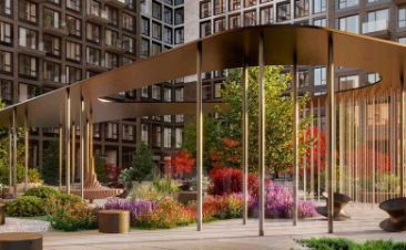 Инфраструктура: На благоустроенной территории комплекса площадью 5 га размещены современные детские и спортивные площадки, зоны отдыха с шезлонгами, фонтан и зона коворкинга.