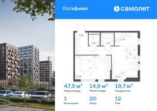 Строим кварталы для жизни с заботой о будущем. Предлагается 1-комнатная квартира комфорт-класса 47,47 кв.м в корпусе 20 на 12 этаже, в ЖК "Остафьево"
