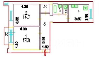 2 изолированные комнаты: 18 кв.м. и 14.7 кв.м. Жилая площадь 32.7 кв.м.
