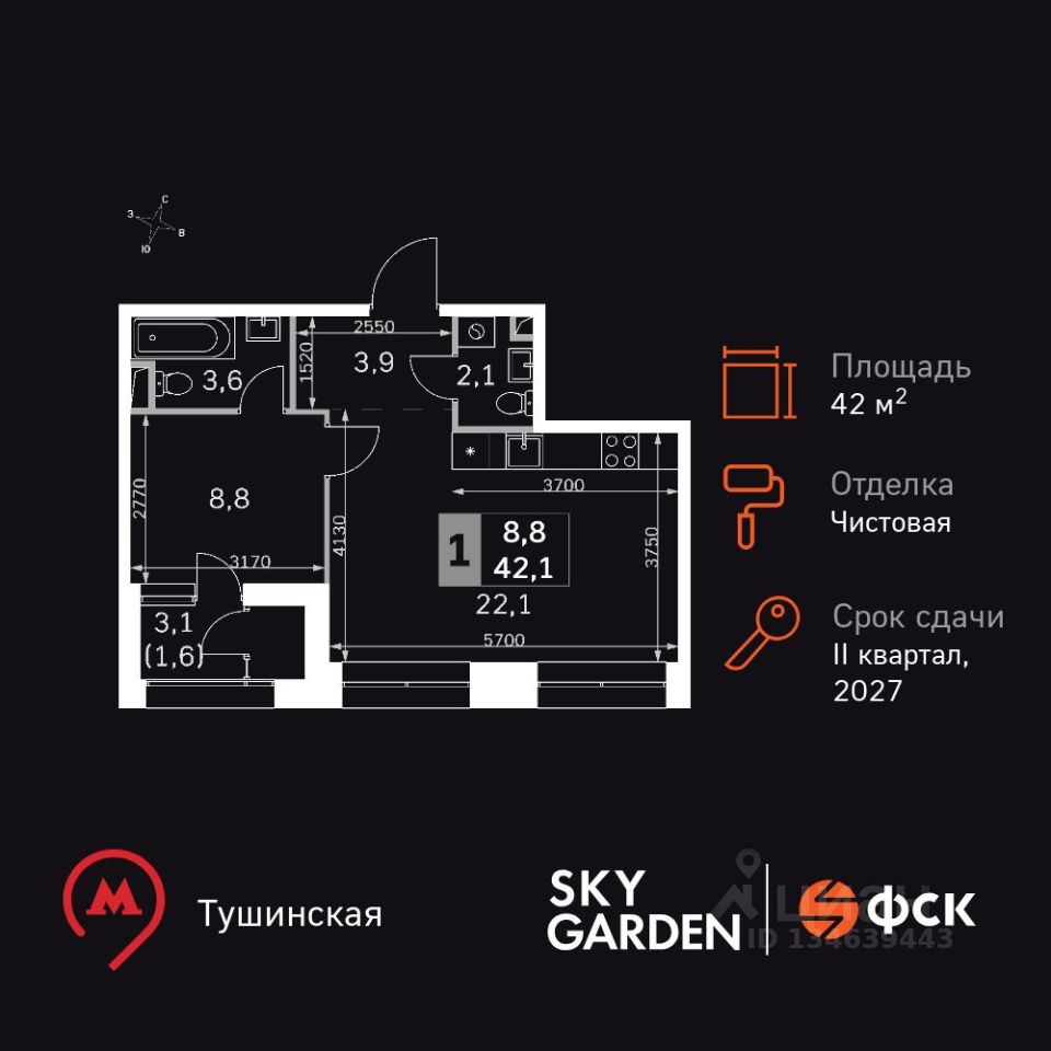 Всего в 12 минутах пешком до м. Тушинская и 15 минутах до станции Тушинская МЦД. На автомобиле: 2 км до Волоколамского шоссе, 2,5 км до МКАД и 15 км до Садового кольца