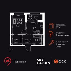 Продаётся 1-к квартира номер 335 общей площадью 37.5 кв.м. на 17-м этаже 44 этажного здания. Отделка Whitebox. Цена с учётом скидки.