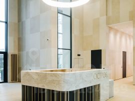 Квартира находится на 20 этаже 24 этажного монолитного дома. Интерьеры центральных входных групп выдержаны в элегантном стиле - с потолками до 7,9 м, окнами "в пол", стильными стойками ресепшена и комфортной мебелью в мягких зонах ожидания. Лобби-клуб для жителей включает в себя детский игровой зал, фитнес-рум, лаунж и приватные места для деловых встреч.