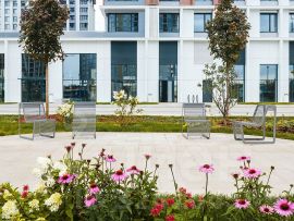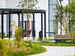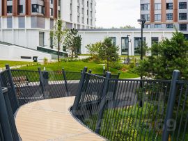 Ландшафтный двор создан как луговой заповедник с полянами, холмами и максимальной площадью озеленения. Элементы ландшафта служат натуральными границами для зон отдыха, занятий спортом и детских игр. Двор продуман как комфортное место отдыха для жителей любого возраста. Территория квартала закрыта от посторонних и обеспечена круглосуточной охраной, системами контроля доступа и видеонаблюдения.