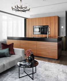 В апартаментах выполнен дизайнерский ремонт с использованием высококачественных материалов. Интерьер выполнен в современном стиле и дополнен стильной мебелью и техникой.